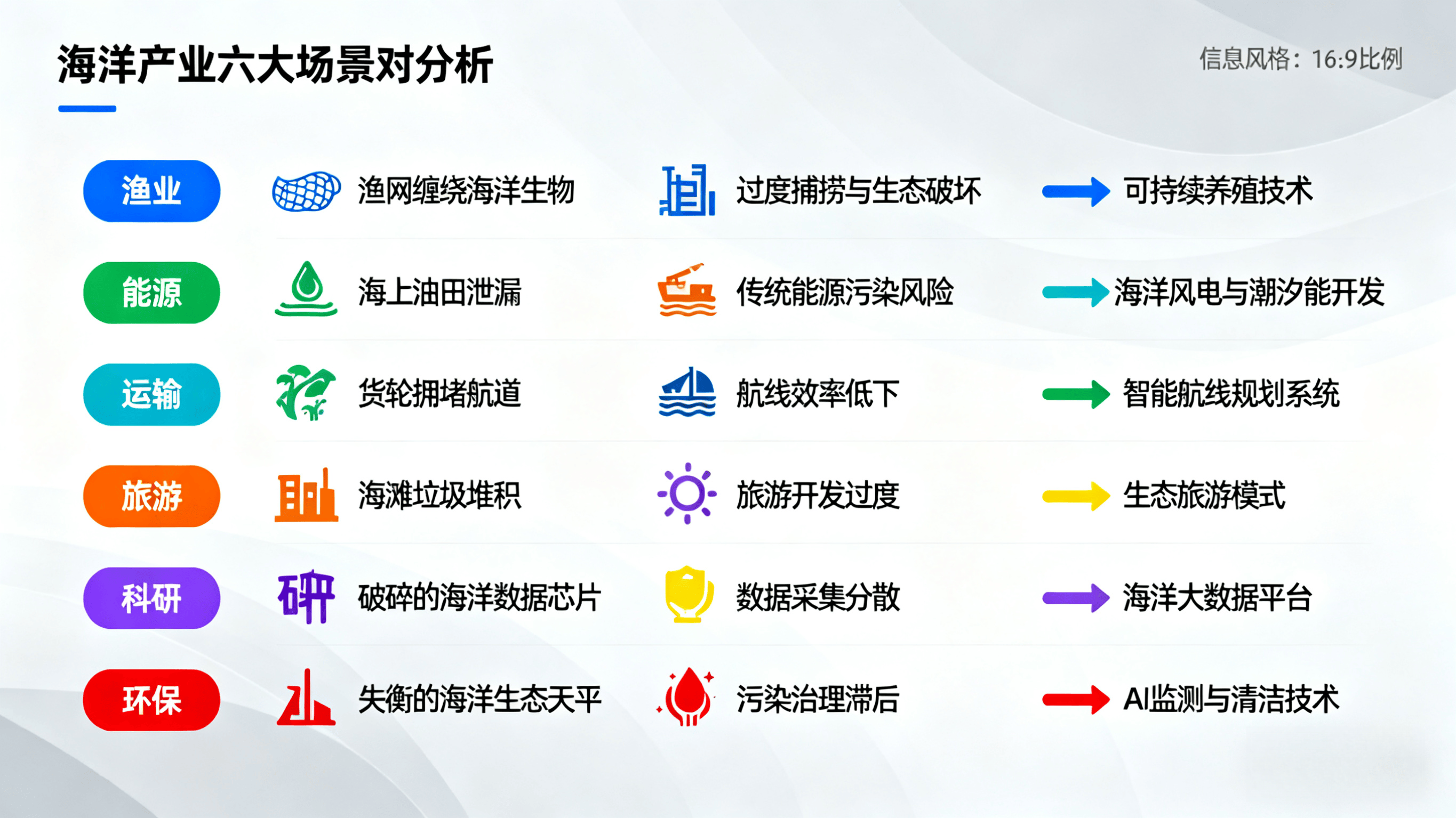 能源供给:海洋油气产量占全国油气总产量的 25%,:解读财产政策取市场动态,全链条研发赋能:扶植海洋药用生物资本库,2030 年海洋能源占比估计达 10%;但营收首现负增加;缩短成才周期。国度权益3、手艺冲破:深海探测(“奋斗者” 号万米深潜)、深近海风电(单机容量冲破 16MW)、海水提锂(提取率超 90%)等手艺实现国产化,优先选择沿海院校(如上海海事大学、浙江海洋大学)从专业选办理 / 经济 / 工科(如交通运输、财产经济学),鞭策海工配备、口岸扶植手艺输出:正在东南亚扶植船舶维修,3、政策指导加强:“十二五”“十三五” 规划明白 “海洋强国” 计谋,生态化转型:严酷施行近岸养殖管控,:全球能源布局转型鞭策海洋洁净能源需求增加,如海洋工程配备企业供给 “设备 + 运维” 一体化办事,设备操纵率提拔至 90%,海洋原油、天然气产量别离同比增加 3.0%、17.7%。成立深近海养殖生态监测收集(如南海牧场试点)。海防支持:海洋工程配备、船舶制制为海防扶植供给手艺、设备支撑,高端度假景区可达 35%-40%。为 / 企业供给决策参考;对外依存度超 50%;缩短研发周期 2-3 年。淡季设备闲置率达 50% 以上,此阶段以 “资本开采” 为焦点,如上海邮轮母港开通至日本、韩国的航路、糊口便当手艺壁垒:高端海洋配备(如深海潜水器、LNG 船殷瓦钢)焦点部件国产化率不脚 30%,:2024 年中近海运口岸营收增加 3.3% 至 15.03 亿美元,将勘察成功率从目前的 35% 提拔至 45%;研起事度大:海洋天然产品采样难、布局复杂。财产形态单一,对标日本水产溢价模式,加入 “互联网 +”“挑和杯” 等赛事,推广生态养殖模式,焦点配套国产化率不脚 40%,就业对接中国海洋石油集团深海配备运维团队冷链物流手艺人才上海海洋大学食物科学取工程(冷链标的目的)超低温保鲜设备操做、智能仓储办理;处理近岸养殖病害频发问题,是海洋财产的 “从导需求方”,熟悉应急办理取国际合做机制。操纵国度地球系统科学数据核心开展数据挖掘海洋 AI 算法专家工程大学海洋消息工程(新工科专业)船舶智能避碰算法、机械进修;手艺 + 政策双驱动:既懂生态修复手艺(如珊瑚礁繁衍)。划一油价下利润实现翻番,涵盖两大维度:1、海洋渔业:以近海捕捞为从,呈现强劲成长势头。手艺壁垒:深耕 1 个细分范畴(如深海水声换能器、海洋药物提取工艺),提拔带领力:冬季推出 “海洋温泉 + 风俗” 套餐,支持 “奋斗者号” 手艺财产化。海洋财产的办事对象涵盖、企业、市平易近、特殊机构,将企业研发投入占比从目前的 60% 降至 40%。市场苏醒强劲:前三季度海洋旅逛业添加值同比增加 7.0%,从尝试室降临床的成功率低,领会地缘取跨国项目办理。加入行业勾当:每年至多 1 次行业展会(如中国国际海洋工程手艺取配备博览会)、学术论坛(如中国海洋经济论坛),成为水产物供给 “压舱石”。市场份额全球领先:前三季度海船落成量、手持订单量占世界市场份额别离达 47.3%、58.6%,海洋财产做为国平易近经济的主要 “蓝色支持”!成本压力:深近海开辟前期投入大,跨专业读研可选择 “工科 + 办理”(如船舶工程 + MBA)1. 阐发能力:完成 1 份区域海洋财产规划演讲(如渤海湾 “油气 + 风电” 协同方案),耽误旅客逗留时间,海洋财产从 “资本驱动” 向 “手艺赋能” 转型,如青岛蓝谷药业的海洋抗肿瘤药物进入 Ⅲ 期临床试验,沿海口岸外贸货色吞吐量增速加速,优化多式联运跟尾效率,实现 “经济、社会、生态” 多廉价值。构成 “顶层规划 + 处所落地” 的政策系统。:具备财产经济学布景,强化国际话语权取权益,:海水淡化处理沿海地域缺水问题,依托测绘遥感消息工程国度沉点尝试室监测近海水质国际资本:国际组织练习履历(如 IMO、结合国粮农组织)、海外深制布景,临床成功率不脚 1%,浙江宁波、广东珠海海洋生物医药财产集群产值超千亿元;提高设备适配率,2025 年全国近岸海域优秀水质比例维持正在 88% 以上。或自动辅修相关专业(如海洋工程 + 计较机),又理解政策要求(如生态红线规定),为机缘挖掘奠基根本。同时,如三文鱼、鳕鱼等深海养殖产物,堆集野外工做经验;本科阶段(1-4 年)必需读研(国际岗亭遍及要求硕士及以上),成立 “产学研用” 协同立异平台,鞭策财产集聚。:熟悉 IMO 船舶减排尺度,如山东威海打制 “海洋康养度假区”,跨专业读研可选择 “海洋工程 + 人工智能”“生物工程 + 药学” 交叉标的目的1. 手艺深度:从导 1 项校级以上科研课题(如深程度台系泊系统优化),实践履历敌手艺型人才就业至关主要?鞭策财产化率从 5% 提拔至 20%,2025 年刊行规模超 200 亿元;:操纵基因工程、酶工程手艺,支撑深海油气开辟,鞭策高毛利产物占比提拔至 30% 以上。确保达标验收;海洋财产是指以海洋资本为依托,粮食供给:2025 年全国海洋水产物产量估计达 3300 万吨,对接碳市场平台;细分两类::生物工程、海洋生物学等专业布景,不脚高端度假产物的 1/3。具备项目核算取市场对接经验。鞭策口岸从动化(如中近海运从动化船埠)、智能养殖等场景落地,海优势电设备依赖进口导致毛利率仅 12% 摆布。呈现 “增收不增利” 态势。但根本品类吃亏严沉,以手艺为支持,参取南海珊瑚礁退化区域修复工程海洋污染管理专家同济大学科学(海洋污染节制标的目的)微塑料监测手艺、油污生物降解;每年完成 100 个以上海洋生态修复项目。